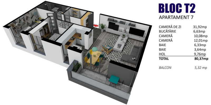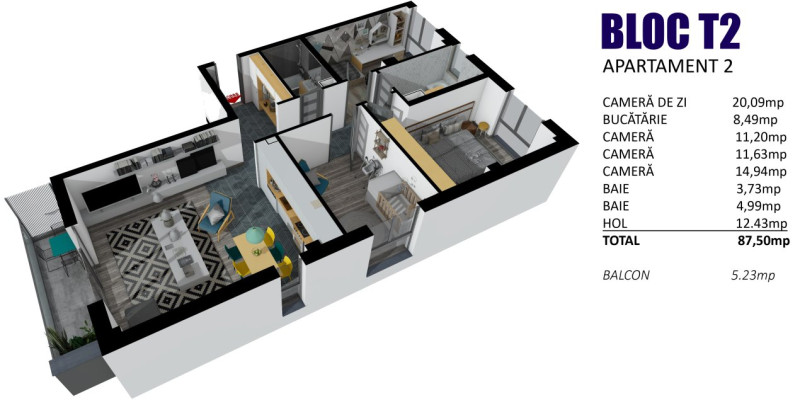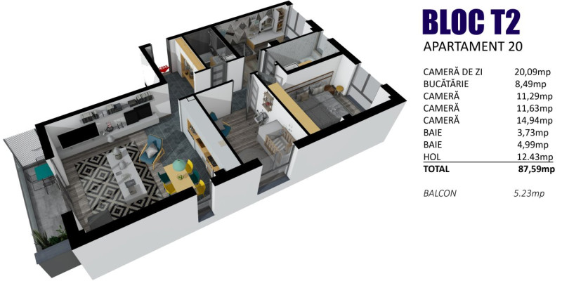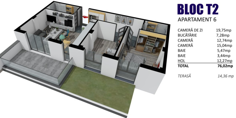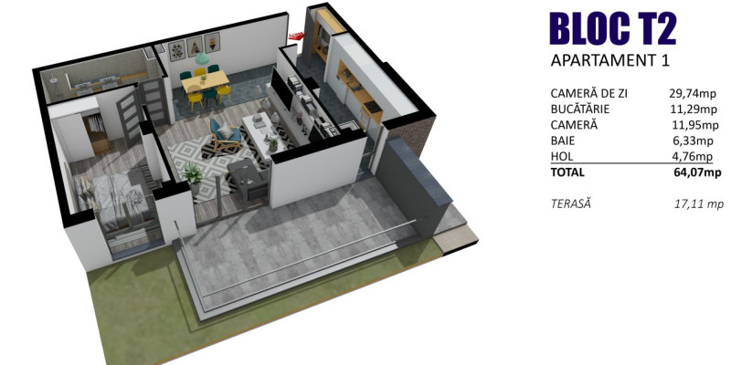 Suprafete intre 64.07 mp si 87.59 mp cu terase intre 5mp si 25 mp