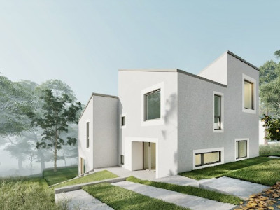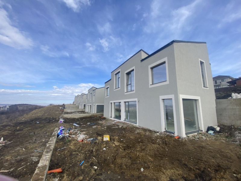 Bling imobiliare va propune case cuplate pozitionate in Dezmir, intr-o zona numai de case, nou dezvoltata, aerisita, linistita, cu acces facil si cu o panorama deosebita. Ferite de zgomotul și poluarea orașului, dotate cu facilitățile unei zone rezidențiale moderne, casele beneficiaza de un cadru natural care va va face sa va simțiți mereu in vacanța si de un design unic, avangardist si totodata practic, care se contopeste in armonie perfecta cu natura, al carei verde ne încarcă și ne oferă plusul de energie necesar menținerii celui mai bun tonus. Constructiile sunt din caramida pe fundatii de beton armat si sunt dipuse pe doua niveluri, P+E, fiind astfel compartimentate : la parter regasim un living generos in care putem petrece clipe memorabile alaturi de familie si prieteni, o bucatarie cocheta, o baie si o terasa de pe care se pot admira apusurile, deoarece orientarea vestica ofera spectaculozitate, iar la etaj : dormitorul matrimonial cu baie proprie si alte 2 dormitoare si o baie, care vor desavarsi atmosfera intima. Pentru un plus de confort si pentru a putea fi personalizate asa cum va doriti casele se predau la stadiul de semifinisat, cu centrala termica proprie si incalzire in pardoseala, geamuri panoramice triplex, instalatii trase la pozitie, cu sapa si peretii gletuiti. In ceea ce priveste utilitatile, ansamblul se va preda cu canalizare, apa curenta si energie electrica . Accesul catre zona centrala a orasului si catre Iulius Mall este forte rapid(circa 15 min), castigand astfel cel mai valoros asset al zilelor noastre : timpul. Astfel, ansamblul ofera toate conditiile de care aveti nevoie pentru a va bucura de un stil de viata sanatos si relaxat. Pretul afisat este cu TVA inclus.