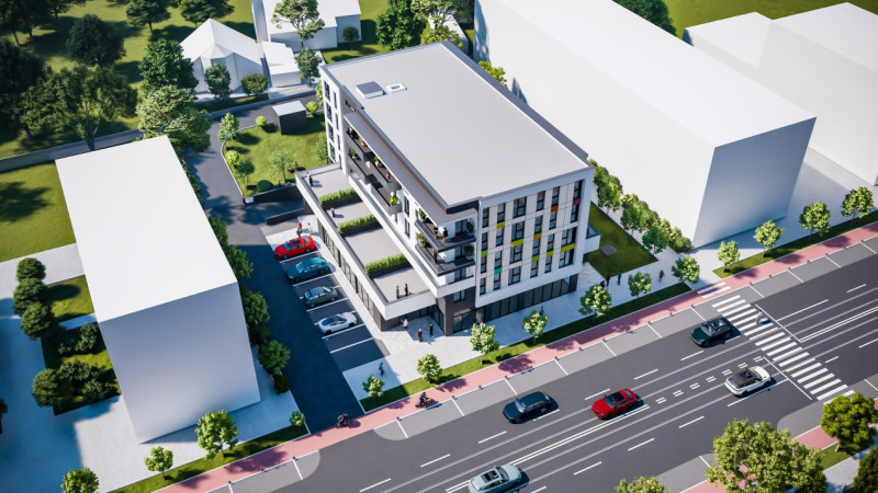 În plus, acesta dispune de o parcare subterană, cu un număr total de 34 de locuri de parcare şi un număr de 10 de parcări exterioare destinate exclusiv spaţiilor comerciale.