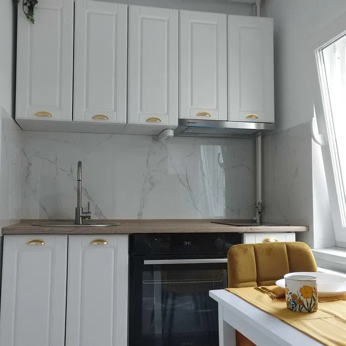 Garsoniera este mobilată cu bun gust și dispune de electrocasnice moderne — mașină de spălat, frigider, cuptor, plită, cuptor cu microunde, aspirator vertical, fier de călcat, precum și veselă completă.