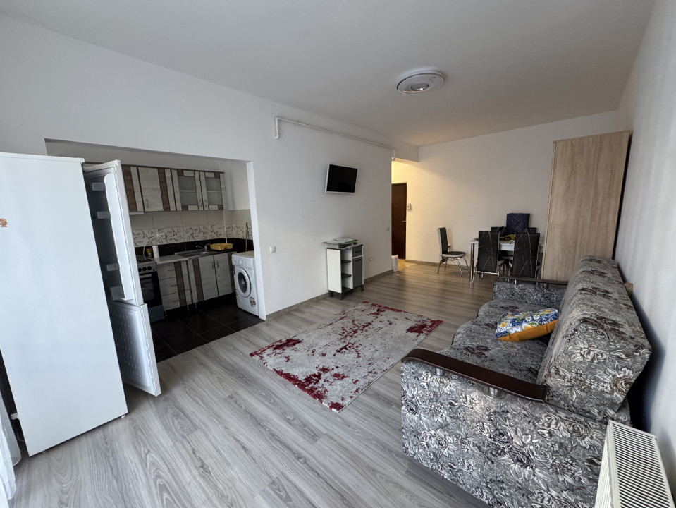 Va oferim spre inchiriere o garsoniera in zona PORII . Este pozitionat1 la etajul 1 al unui bloc cu regimul de inaltime P+3+M, finalizat in anul 2015. Compartimentarea este semidecomandata, suprafata utila este de 35 mp. si se prezinta astfel: hol, baie, bucatarie open space cu livingul. Este situat in zona foarte buna, aproape de statii de mijloc de transport in comun si magazine. Garsoniera se inchiriaza complet mobilat si utilata. In pret este inclusa si un loc de parcare. P8214