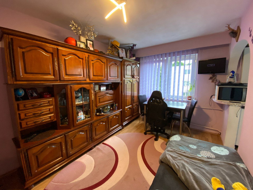 Este situata la etajul 4 al unui bloc cu 4 etaje, se vinde complet mobilat si utilat.