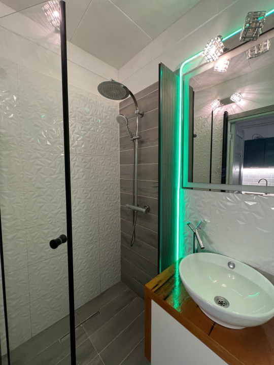 Renovat complet, mobilat și utilat modern, dotat cu materiale premium și finisaje de înaltă calitate, acest apartament beneficiază de instalații electrice și sanitare noi pentru un confort sporit