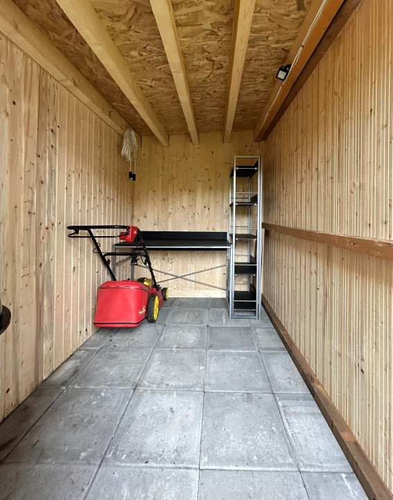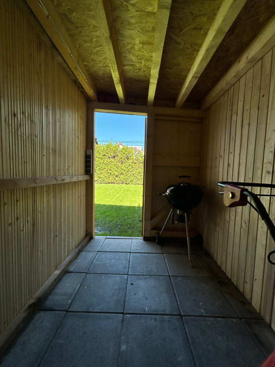 1 curte individuală de 120 mp, cu magazie pentru depozitare, ideală pentru relaxare