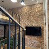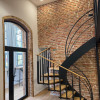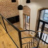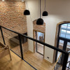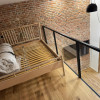 Apartamentul respectă stilul “loft”, păstrându-se elemente de cărămidă aparentă, originală, combinată perfect cu elemente industriale de design precum structura scărilor interioare din metal sau corpurile de iluminat.