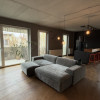 Livingul este spatios si luminos, cu ferestre mari lasand lumina naturala sa patrunda in incapere.