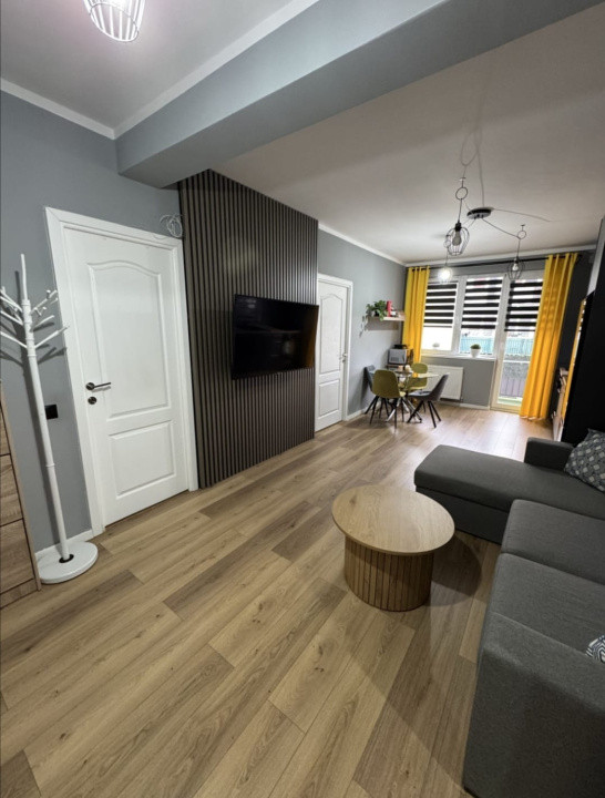 Apartamentul se închiriază complet mobilat și utilat, incluzând: mașină de spălat haine, mașină de spălat vase, frigider, cuptor, cuptor cu microunde, plită pe gaz, aparat de cafea, televizor, sound-bar, precum și toate cele necesare traiului de zi cu zi.