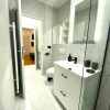 - Baie modernă cu duș walk-in și mașină de spălat cu uscător incorporat