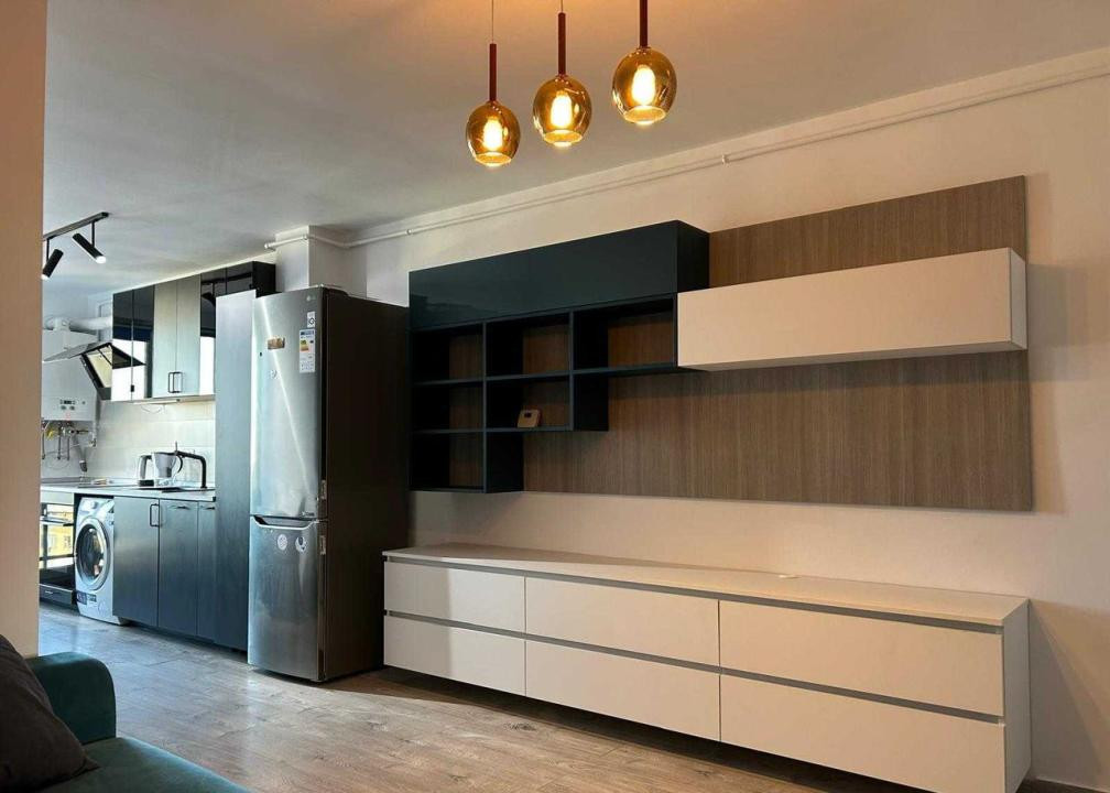 - bucătărie complet mobilată și utilată, inclusiv: cuptor electric Bosch, plită cu inducție Bosch, mașină de spălat vase Bosch, mașină de spălat rufe + uscător Electrolux