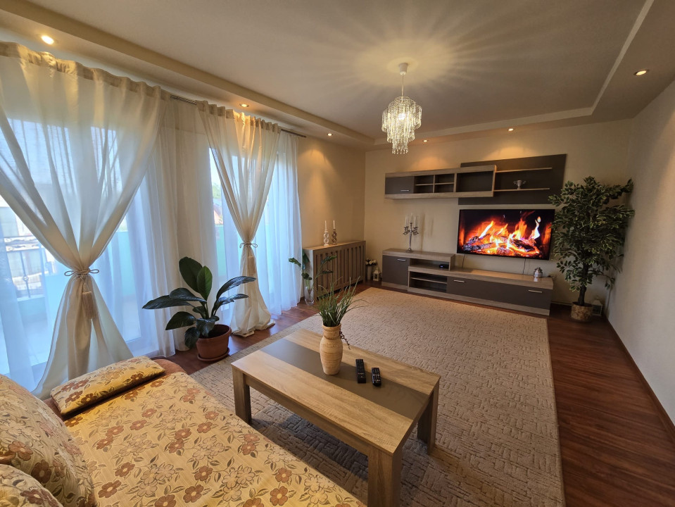 Bling Imobiliare va propune spre inchiriere un apartament de 2 camere, cu suprafata utila de 81 mp. in cartier Iris. Apartamentul este situat intr-o casa la etaj, ofera un spatiu confortabil si bine amenajat pentru locuit. Dispune de un dormitor spatios, un living luminos, bucatarie complet mobilata si utilata, o baie moderna cu jacuzzi. Beneficiaza de 2 locuri de parcare. Pentru detalii suplkimengtare va asteptam la vizionare.