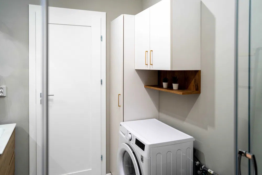 - baie cu dus walk-in, masina de spalat si uscat haine, dulap pentru depozitare;