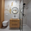 Va propunem spre vanzare un apartament cu 2 camere,semidecomandat,avand suprafta utila de 57 mp si o terasa de 12 mp.Acesta se afla la etajul 2 al unui imobil cu regim de inaltimes+p+9 si este compartimentat astfel:hol,dormitor,living cu bucatarie de tip open space,baie si terasa.Apartamentul se vinde la stadiul de finisat si mobilat.Precizam faptul ca mobila a fost realizata la comanda si tot ce tine de design a fost amenajat de catre o firma specializata in acest sens.Optional,se poate achizitiona o parcare subterana la pretul de 1500 euro+tva.