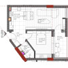 Apartamentul are 2 camere și compartimentarea se prezintă astfel: hol, living cu bucatarie open space, dormitor, baie și un balcon.