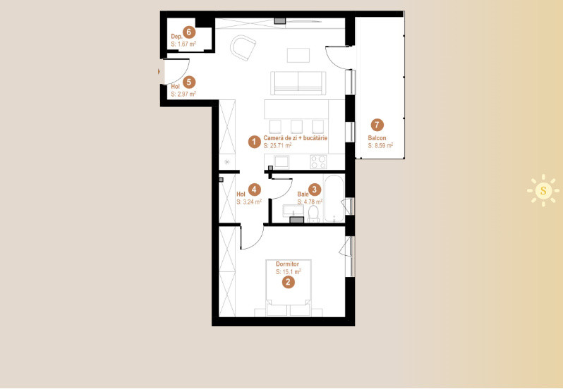 • Design elegant: Balustrade din sticlă care amplifică luminozitatea și stilul apartamentului