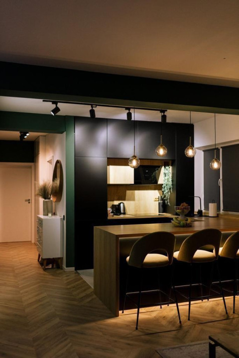 Toata mobila facuta la comanda din materiale de cea mai buna calitate MDF vopsit cu toate accesoriile de la Blum.