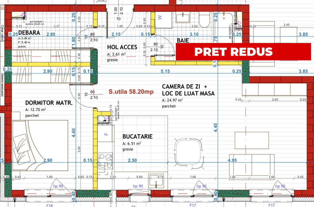 Va propunem spre vanzare apartament de 2 camere, finisat, intr-un ansamblu nou construit in zona Eroilor. Apartamentul dispune de o suprafata utila de 58.2 mp, compartimentarea este semidecomandata si se prezinta astfel: hol, debara, living plus bucatarie, dormitor si baie.