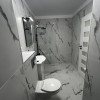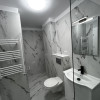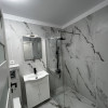 • Baie echipată cu gresie și faianță moderne tip marmura alba, wc incastrat, chiuveta si dus Walk-in