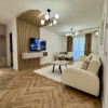 Apartamentul se oferă spre achiziție complet mobilat și utilat, dotat cu toate electrocasnicele necesare (plită prin inducție, hotă, cuptor, cuptor cu microunde, mașină de spălat vase, mașină de spălat rufe, frigider, TV) și finisat cu materiale de calitate superioară.