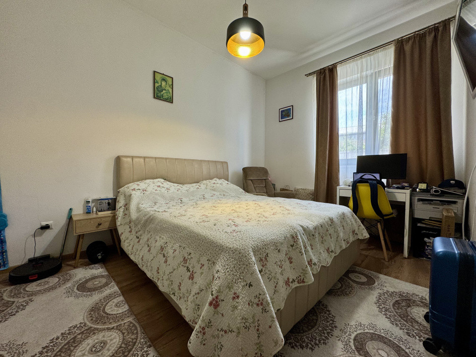 Apartamentul are o suprafață utilă de 51 mp, la care se adaugă un balcon de aproximativ 5 mp, iar compaerimentarea este decomandată, structurată astfel: 1 hol generos prevăzut cu multiple spații de depozitare, 1 bucătărie separată, 1 dormitor matrimonial, 1 cameră generoasă (care în momentul de față e împărțită în zona de living împreună cu locul pentru servit masa și 1 dormitor al copilului, după cum reiese din fotografii), 1 baie CU GEAM și cadă, 1 balcon mai sus menționat.