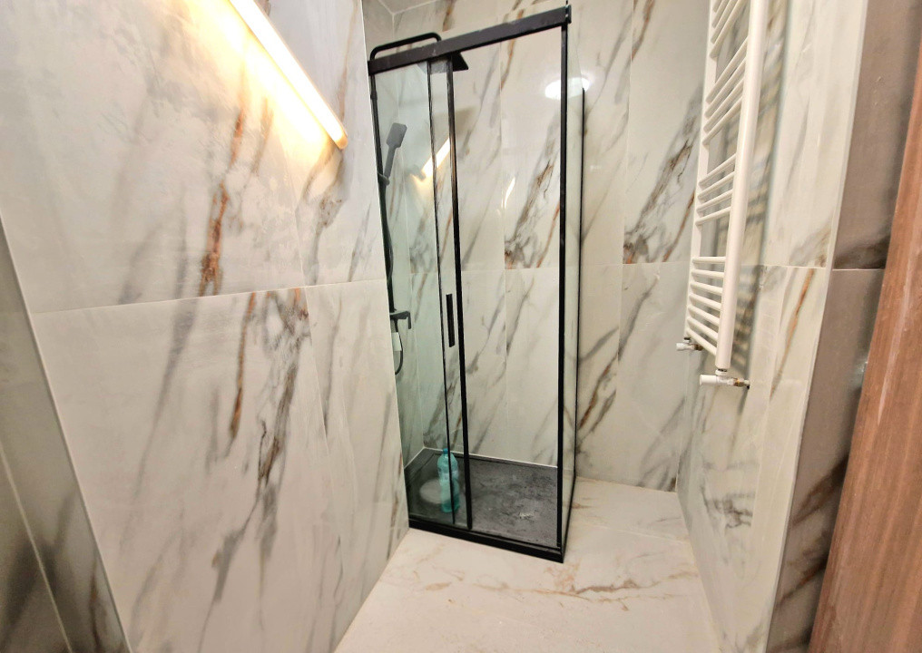 * Living open space cu bucătărie complet echipată( mașina de spălat vase, cuptor electric, plită, cuptor cu microunde, frigider)
