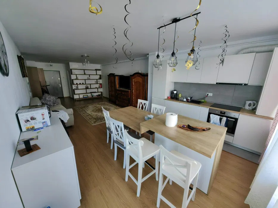 Apartamentul este compartimentat astfel: living + bucatarie open-space, 2 dormitoare, baie cu cada.