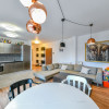 Bucataria este complet mobilata si utilata cu tot ce este necesar, amintim: masină de spalat vase, mașină de spalat rufe, masină de uscat rufe, plită inductie, cuptor electric, combina frigorifica incorporata in mobila de bucătărie, geamuri tripan. Apartamentul dispune de centrala termica de bloc cu contorizare individuala.