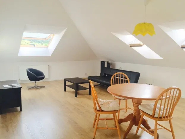Apartamentul este compartimentat astfel:2dormitoare, 1 living spatios cu bucatarie, 2 bai.