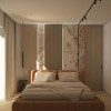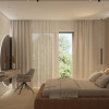 Compartimentarea decomandata se prezinta astfel: hol, living cu bucatarie, 2 dormitoare, 2 bai, un dresing mare o terasa de 50mp si o gradina de 100mp . Acesta este situat intr-un bloc pe structura de beton, imobilul este izolat termic si fonic, vata bazaltica de 15, fatada ventilata, beton amprentat la interior, caramida aparenta, instalatiile electrice, termice si sanitare finalizate, tamplarie PVC cu geam termopan, pompa de caldura, incalzire in pardoseala.