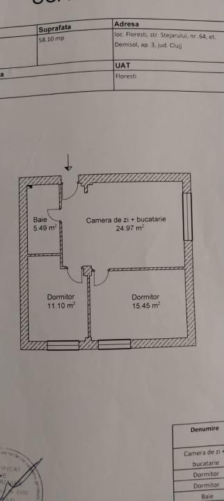 Vă propun spre vânzare un apartament cu 3 camere (2 dormitoare + living open-space cu bucătărie), cu o suprafață de 58 mp, situat la demisolul unui bloc construit în anul 2016, pe strada Stejarului, în Florești.