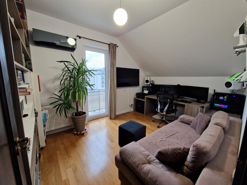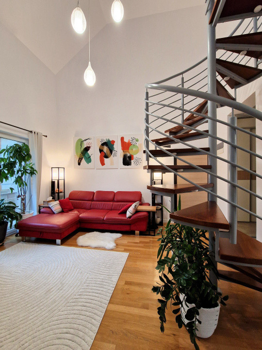 Bling vă oferă spre vânzare un penthouse modern, dispus pe două niveluri, cu o suprafață utilă de 108,25 mp, balcon de 8 mp și boxă de 15 mp la subsol, situat pe Valea Chintăului, la doar 5 minute de Auchan Iris.