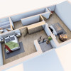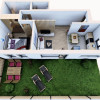 Apartamentele sunt compuse din living + bucatarie open space, baie, dormitor, si zona verde,