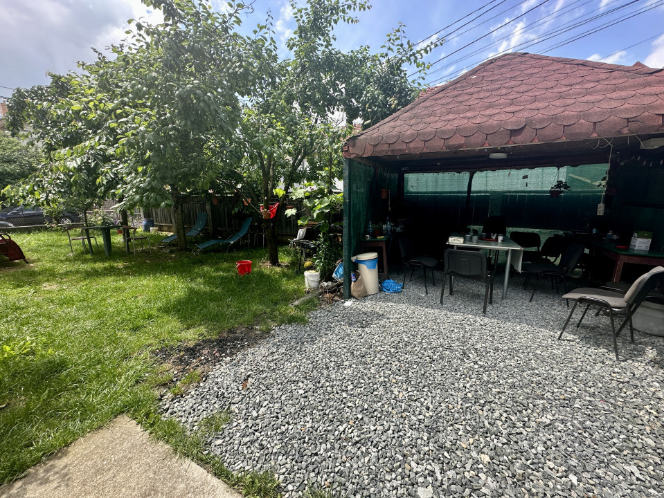 Curtea este mare 600 mp, frumos amenajată cu verdeața, foișor, frontul fiind mare 28 mp la 2 străzi.