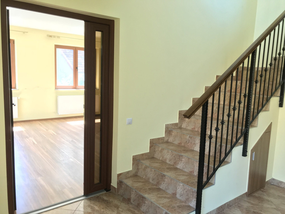Casa este finisata cu gresie si faianta, parchet in camere, centrala termica proprie, geamuri termopan si sistem de alarma.