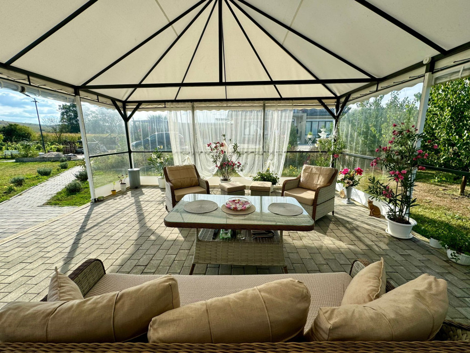 Curtea este amenajată cu numeroase facilități pentru petrecerea timpului liber și relaxare. Aceasta include o bucătărie de vară complet utilată, cu terasă și baie proprie, un garaj, o filigorie de 60 mp contruită din structură de metal și prelate de cea mai înaltă calitate, perfectă pentru relaxare și servirea mesei în aer liber, dotată cu grătar. Grădina este frumos întreținută, cu pomi fructiferi, diverse flori și o plantație de zmeură pe o suprafață de 3000 mp, ideală pentru o mică afacere agricolă.