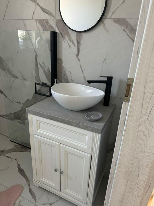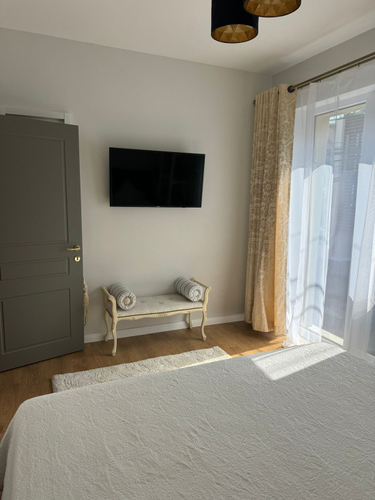3 dormitoare, living si bucatarie, 3 bai, terasa si loc de parcare.