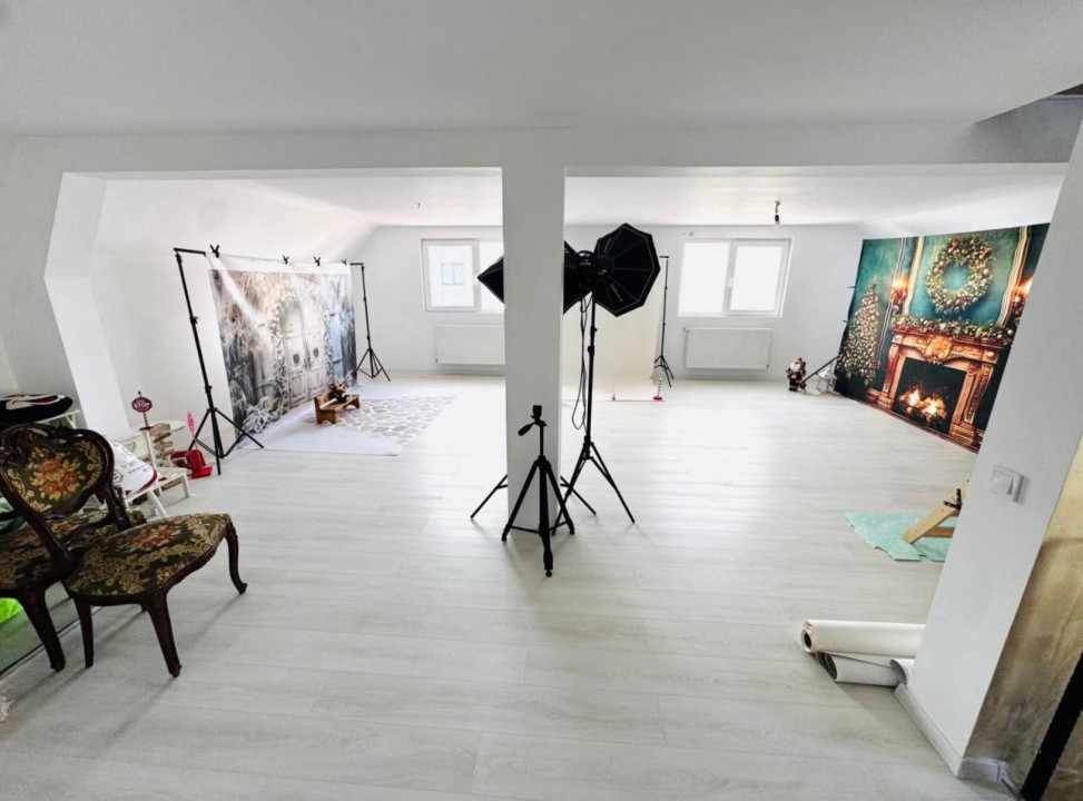 -la etaj: 1 spațiu mare open-space care permite despărțirea cu pereți după nevoile cumpărătorului, 1 baie nefinisat (toate utilitățile sunt trase la poziții)
