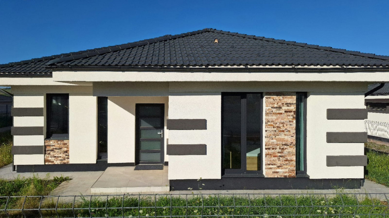 Casa se vinde finisată și mobilată, dotată cu încălzire în pardoseală, centrală pe gaz, aer condiționat si robinet de apa exterior pentru udat.