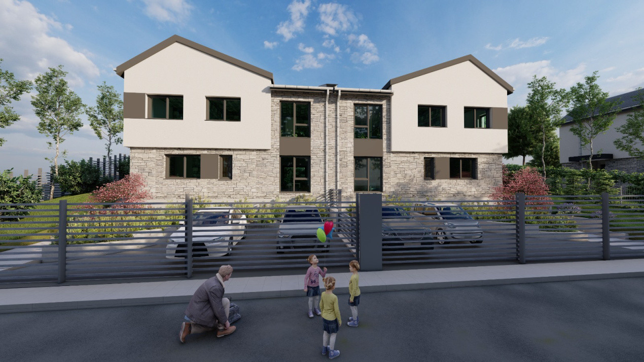 Casă tip duplex, parte dintr-un ansamblu rezidențial nou format din 12 unități locative, în cadrul căruia va fi amenajat un spațiu verde generos, parc și loc de joacă pentru copii, pe o suprafață de 500 mp, cu acces din două străzi. Proprietatea este situată imediat la intrarea în comuna Chinteni, într-o zonă în plină dezvoltare, cu străzi de acces ce urmează a fi asfaltate.