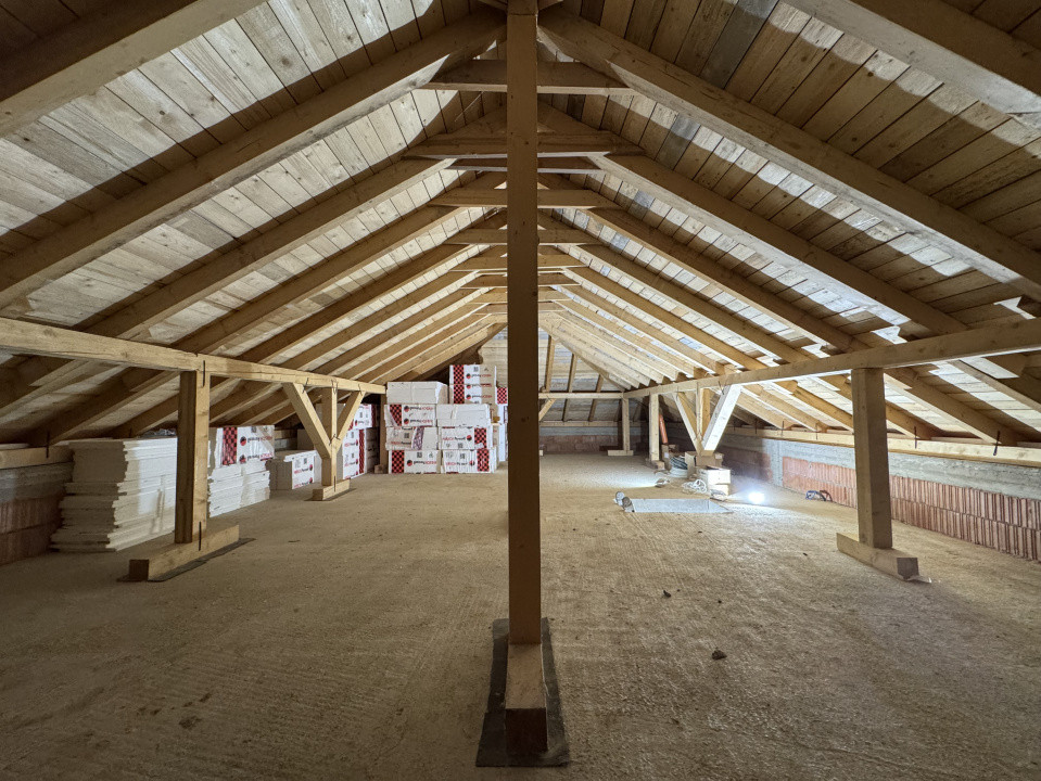 Suprafata utila a casei e de 105 mp + terasa 10 mp la care se adauga 65 mp utili care se pot amenaja in podul existent, inaltimea utila a podului este de 2.65m. In total se pot amenaja 170 mp utili la cererea viitorului proprietar.