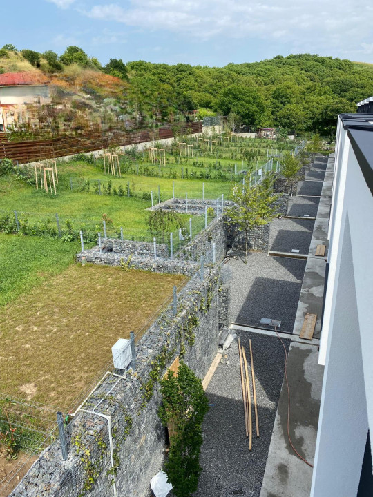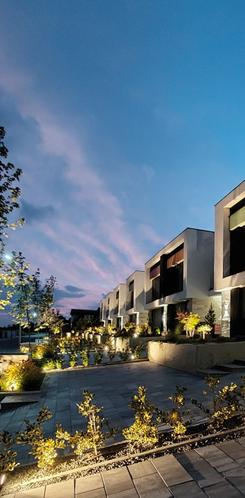 Pavajul folosit pentru curti este de la Viastein, iar spatiile verzi sunt pregatite cu sistem de irigatii, plante diverse cu adaptabilitate si rezistenta la clima locala, precum si cu intretinere facila. Sunt prevazute 2 locuri de parcare(unul acoperit) si priza pentru incarcarea masinilor electrice.