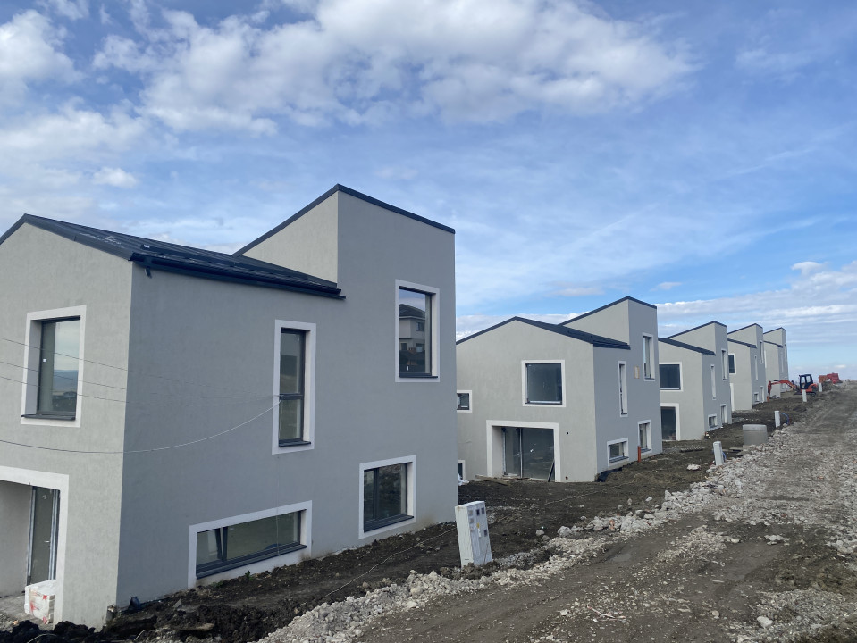 Va propunem case cuplate pozitionate in Dezmir, intr-o zona numai de case, nou dezvoltata, aerisita, linistita, cu acces facil si cu o panorama deosebita. Ferite de zgomotul și poluarea orașului, dotate cu facilitățile unei zone rezidențiale moderne, casele beneficiaza de un cadru natural care va va face sa va simțiți mereu in vacanța si de un design unic, avangardist si totodata practic, care se contopeste in armonie perfecta cu natura, al carei verde ne încarcă și ne oferă plusul de energie necesar menținerii celui mai bun tonus. Constructiile sunt din caramida pe fundatii de beton armat si sunt dipuse pe doua niveluri, P+E, fiind astfel compartimentate : la parter regasim un living generos in care putem petrece clipe memorabile alaturi de familie si prieteni, o bucatarie cocheta, o baie si o terasa de pe care se pot admira apusurile, deoarece orientarea vestica ofera spectaculozitate, iar la etaj : dormitorul matrimonial cu baie proprie si alte 2 dormitoare si o baie, care vor desavarsi atmosfera intima. Pentru un plus de confort si pentru a putea fi personalizate asa cum va doriti casele se predau la stadiul de semifinisat, cu centrala termica proprie si incalzire in pardoseala, geamuri panoramice triplex, instalatii trase la pozitie, cu sapa si peretii gletuiti. In ceea ce priveste utilitatile, ansamblul se va preda cu canalizare, apa curenta si energie electrica . Accesul catre zona centrala a orasului si catre Iulius Mall este forte rapid(circa 15 min), castigand astfel cel mai valoros asset al zilelor noastre : timpul. Astfel, ansamblul ofera toate conditiile de care aveti nevoie pentru a va bucura de un stil de viata sanatos si relaxat. Pretul afisat este cu TVA inclus. Suprafata construită este de 145, 39 mp respectiv 115,93 suprafata. Pentru mai multe detalii si vizionari nu ezitați sa ne contactați