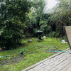 Curtea are formă de L, oferind spațiu pentru relaxare și zonă verde, iar în fața casei sunt amenajate două locuri de parcare.