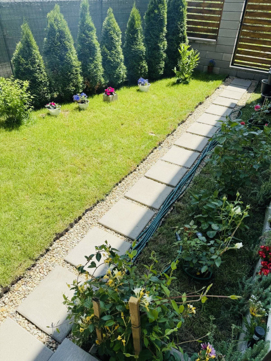 • Curte in fata casei si in spatele casei cu o terasa amenajata .