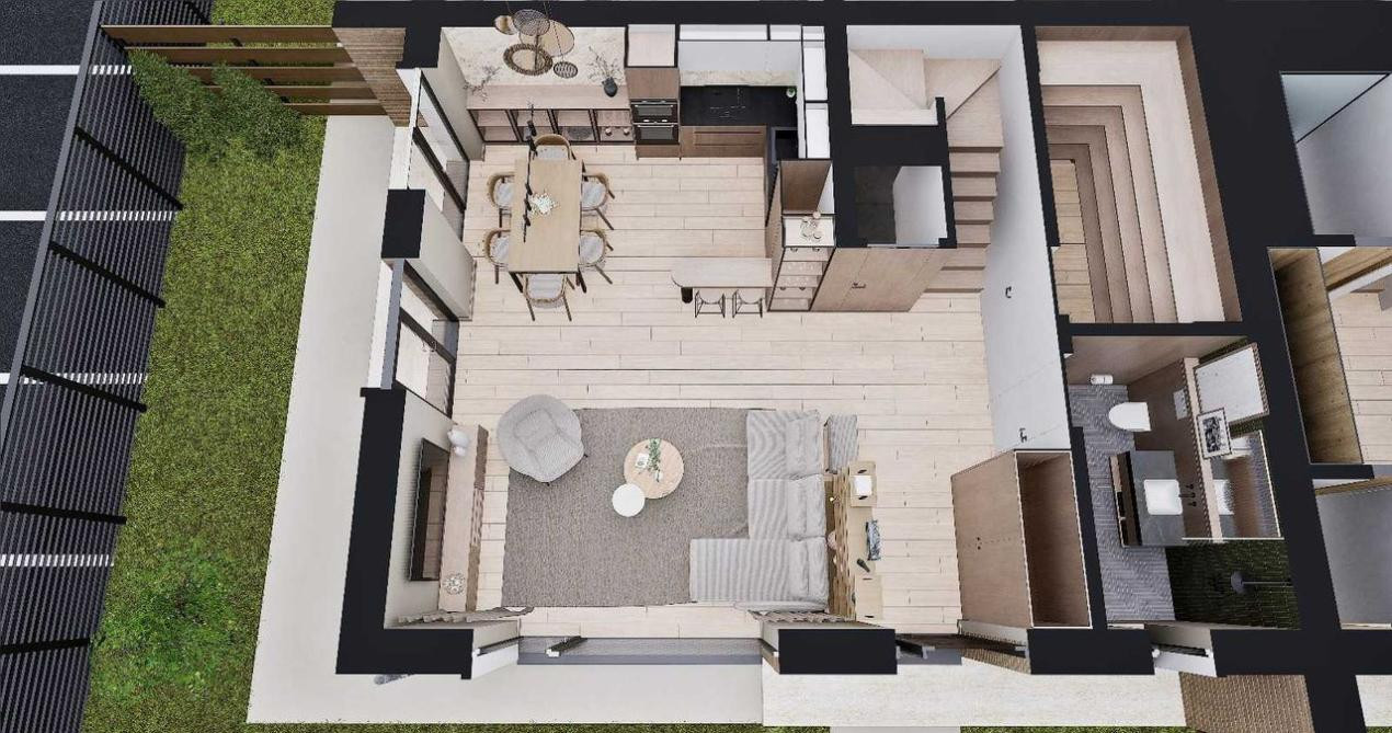 Locuința este desfășurată pe regim de înălțime P+E și are o suprafață utilă de 120 mp, cu o compartimentare practică: