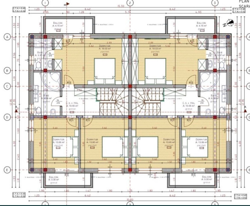 * etaj - trei dormitoare, doua bai si doua balcoane.