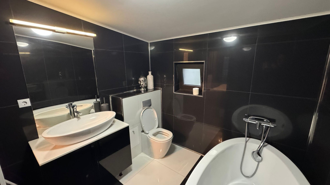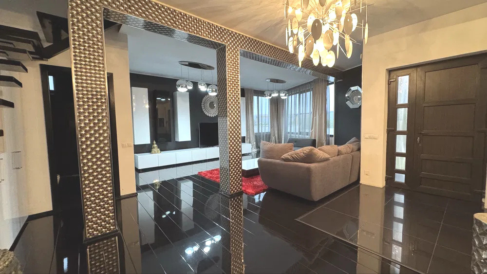 Finisajele minimaliste , in bai montat ceramica , camere si holuri parchet extra lucios , lampi si candelabre moderne . Mai multe detalii la vizionare