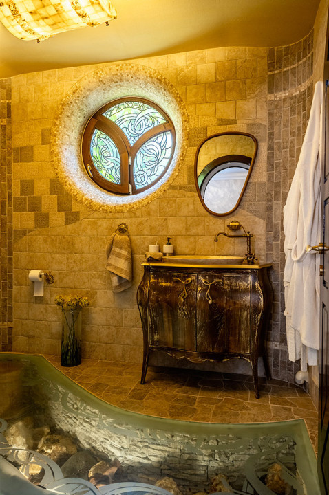 La etajul 1 se află 2 dormitoare, 2 băi și 1 dressing. Totodată, există 4 uși cu vitralii tematice, fiecare încăpere reprezentând câte un anotimp. În hol se găsește un copac stilizat care înlocuiește balustrada.