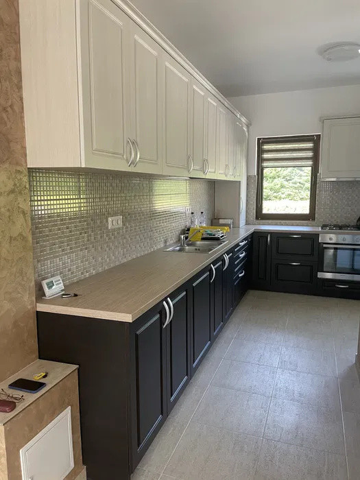 Casa se închiriază nemobilată (doar bucătăria care este complet mobilată și utilată).In fața casei se poate parca 1-2 mașini plus in garaj.
