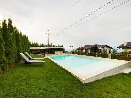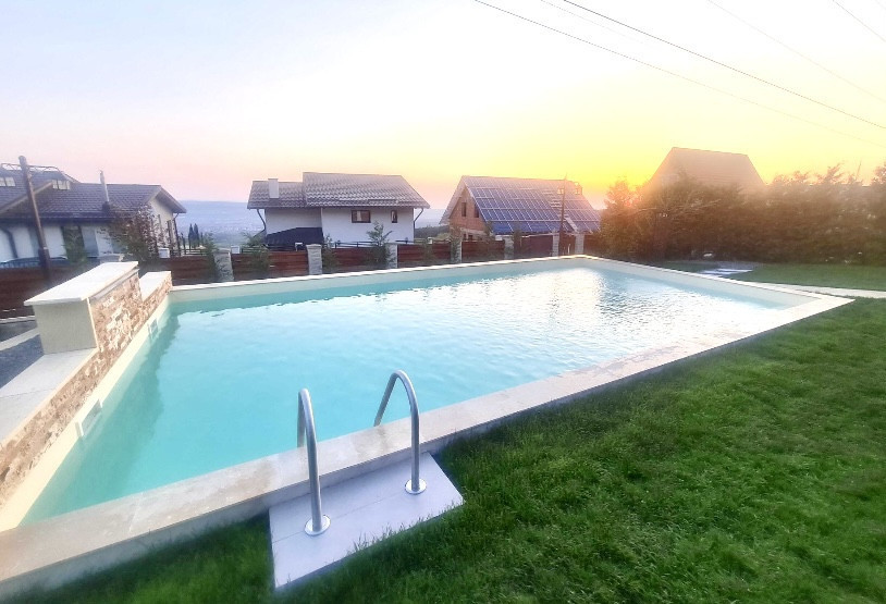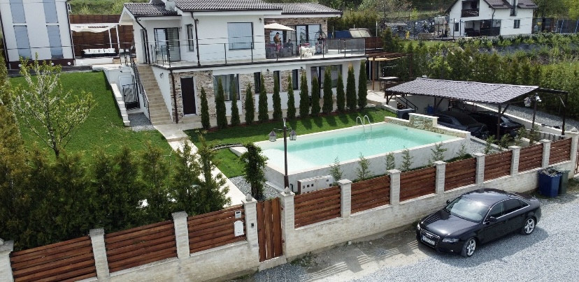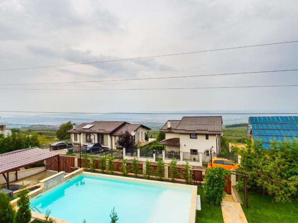 Va oferim spre inchiriere casa individuala de lux La 6 km de centru Orasului Cluj Napoca, situata in zona Feleacu suficient de aproape incat sa nu pierzi mult timp in trafic, dar si suficient de departe incat sa simti ca de fiecare data cand mergi acasa este ca la o casa de vacanta, se afla aceasta proprietate. Aici gasesti tot ce ai nevoie pentru a locui și a te relaxa fără să pleci prea des de acasă: piscină, jacuzzi, loc de joacă pentru copii, terase spațioase, gradină, casă de oaspeți, studio muzical. Farmecul proprietatii sta in privelistea spectacol cu care te poti trezi in fiecare dimineata, sau adormi in serile de vara. De pe una dintre cele patru terase ale casei de aprox. 200 m² utili te poti bucura de tabloul care se schimba pe zi ce trece si-si adapteaza culorile odata cu trecerea timpului. Proprietatea amplasată pe un teren generos de 1001 m² cu pomi ornamentali și pomi fructiferi, oferind locului o energie aparte. Potențialul proprietății se reflecta atat in frumusețea locului cat si in potentialul de a-l transforma intr-un business. La parter sunt amenajate 2 dormitoare, cu dressing-uri proprii, o baie, o camera tehnică și o spălătorie/uscătorie de haine. Pereții din dormitorul copiilor sunt pictați manual transformând încăperea într-una de vis. Etajul se deschide printr-o bucătărie spațioasă, mobilată elegant cu acces spre un living luxos, finisat cu bun gust unde ești invitat să trăiești clipe memorabile alături de cei dragi. Tot aici beneficiezi și de un birou și o baie amenajată într-un stil unic. Proprietatea te surprinde și cu un spațiu de joacă pentru copii alături de un foișor cu o zonă special amenajată pentru grătar. Bonus: Căsuță de oaspeți cu o suprafață de 32 m² care dispune de un living și o bucătărie open-space, baie și un dormitor la etaj. Bonus X2: Dacă ești pasionat de muzică, poți avea la pachet un studio de producție muzicală, echipat complet unde tu sau viitorii tăi parteneri să vă puteți desfășura activitatea. Acest spațiu separat cu terasă proprie poate avea utilitatea pe care ți-o imaginezi. Bonus X3: Sisteme de supraveghere video, video-interfon, copertina auto cu capacitate de acoperire pentru 3 mașini.