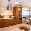 Piesa centrală o reprezintă un bar de 4 metri, cu un blat din lemn masiv, iar partea frontală este placată cu cupru.